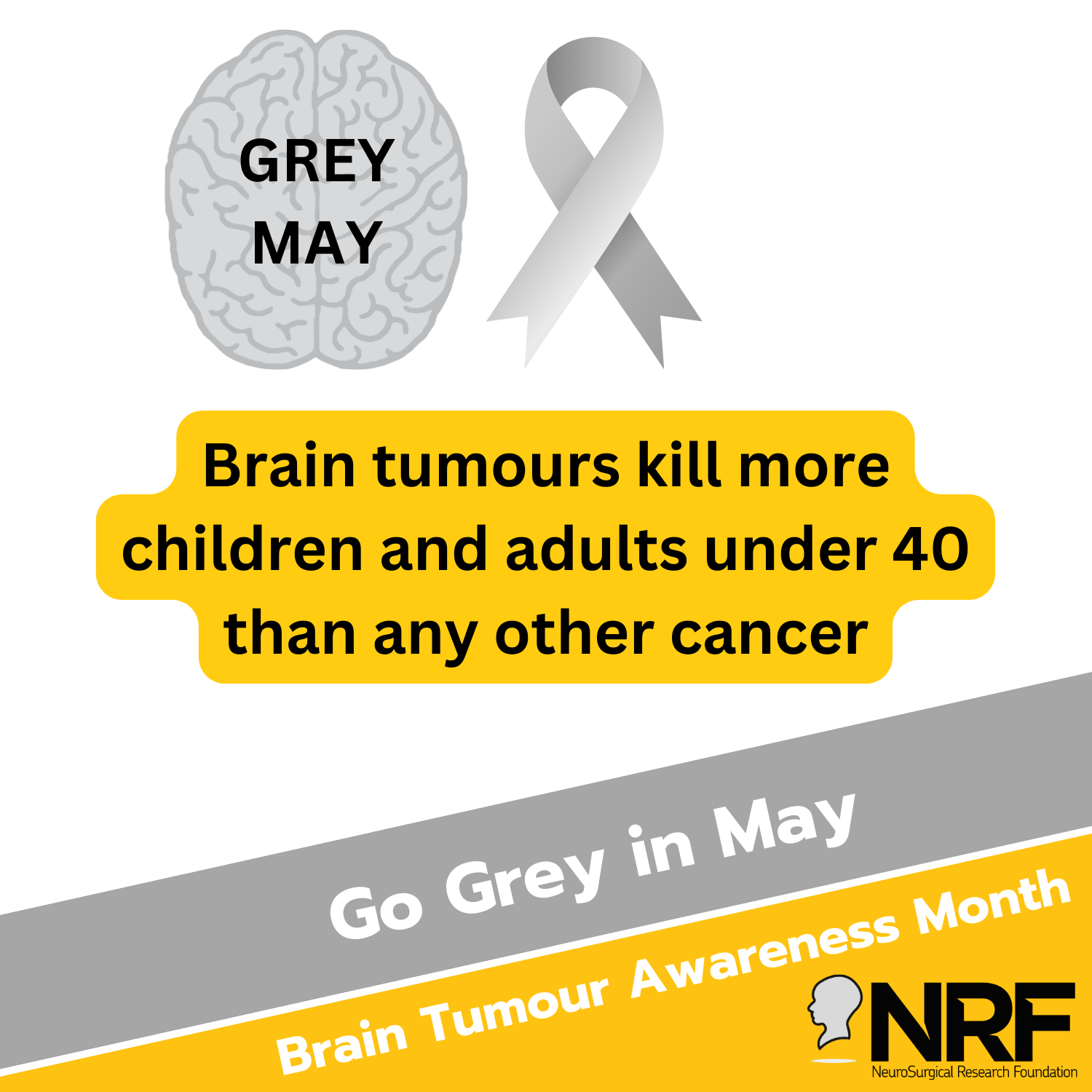 Our mission is to change that. Grey May is a time to raise brain tumour awareness and vital funds for brain tumour research to support patients and families facing this disease.